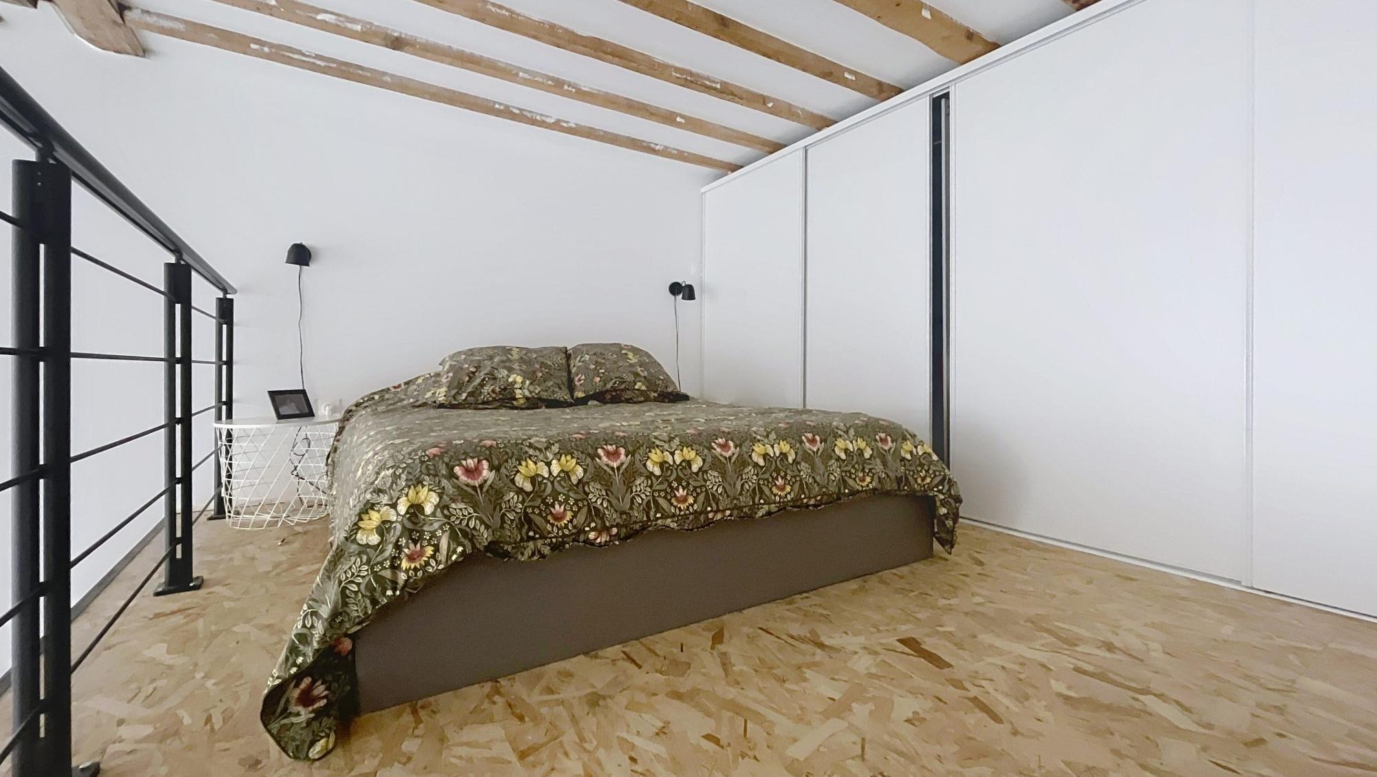 L’appartement se compose d’une agréable pièce de vie lumineuse, avec une cuisine entièrement aménagée et équipée. La salle d’eau, fonctionnelle est complétée par un WC indépendant pour plus de confort au quotidien. Une mezzanine astucieusement agencée, d’une hauteur de 1,80 m, offre des rangements supplémentaires et un espace idéal pour optimiser la surface habitable.