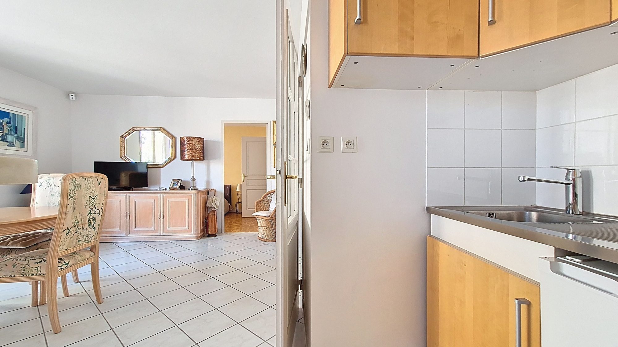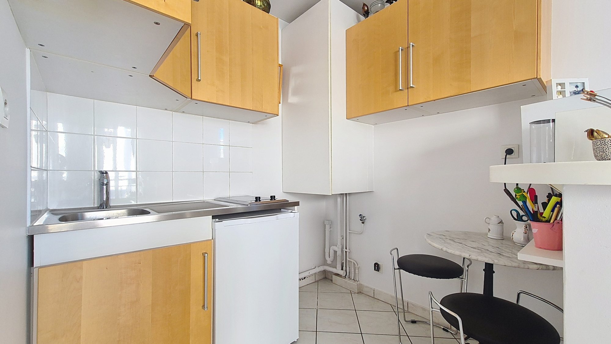 La kitchenette, intégrée au séjour, offre un espace de vie ouvert et modulable selon vos envies.