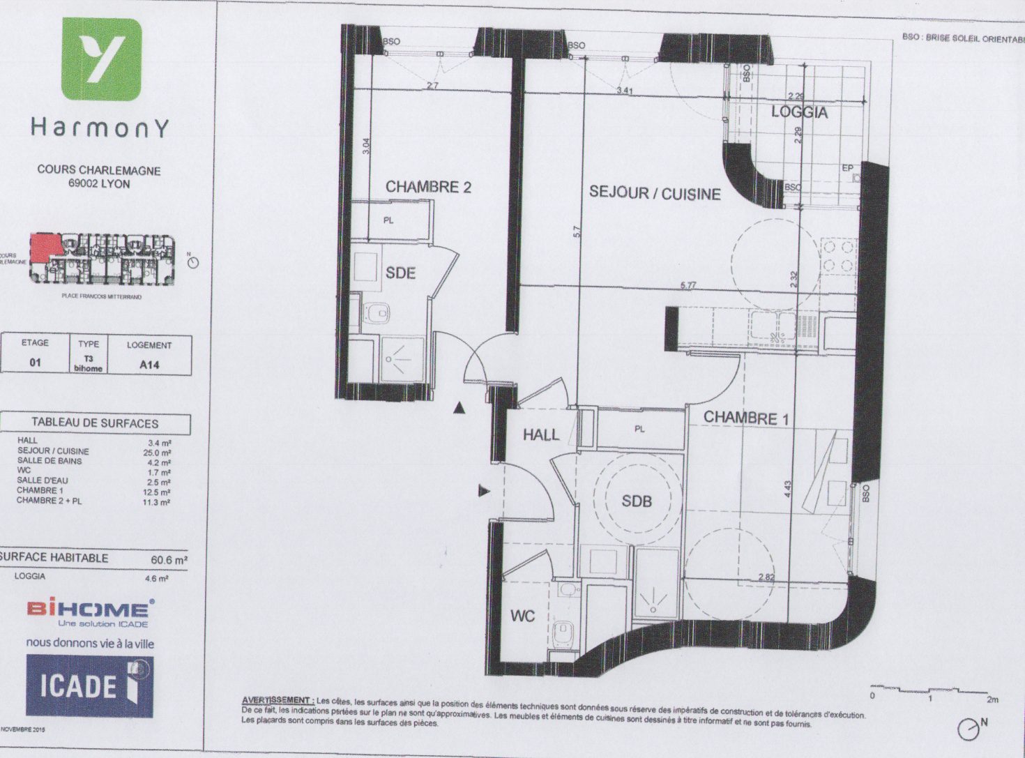 CONFLUENCE ! Au pied du TRAM T1 et T2 avec la vue sur la place nautique la DARSE , cet appartement 3 pièces de 60 m² situé au 1er / 9 , exposé principalement ouest , 1 loggia de 4 , 70 m²m² est distribué ainsi :- 1 entrée desservant 1 salle d 'eau et 1 toilette