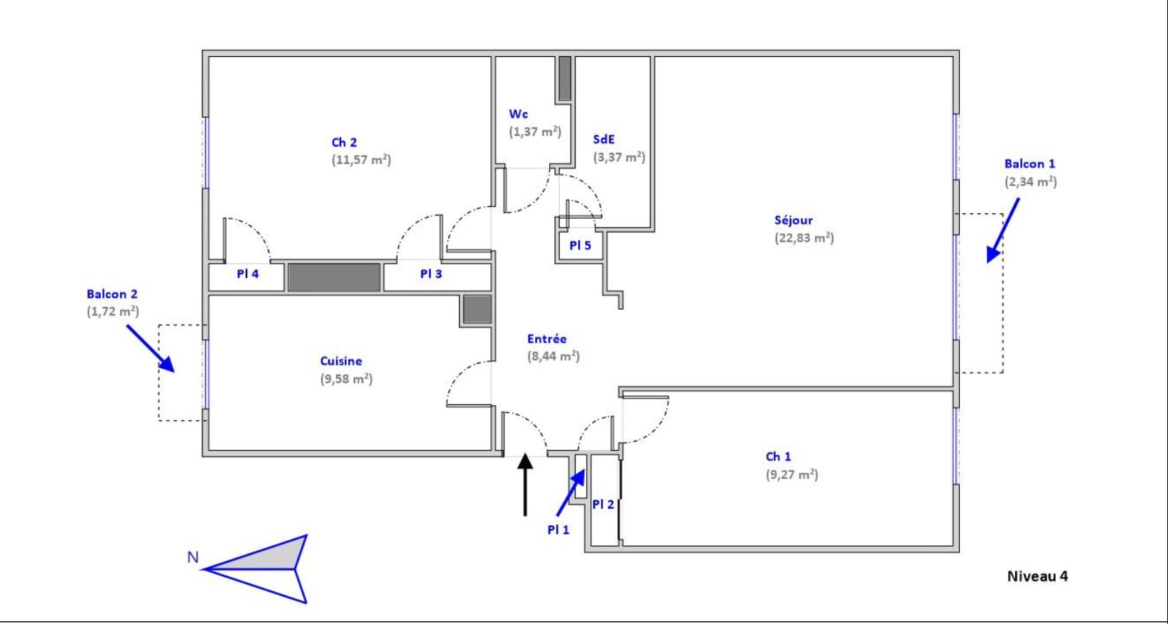 Lumineux T3 de 70m2 environ, traversant, 2 balcons et vues dégagées au coeur du Point-du Jour.