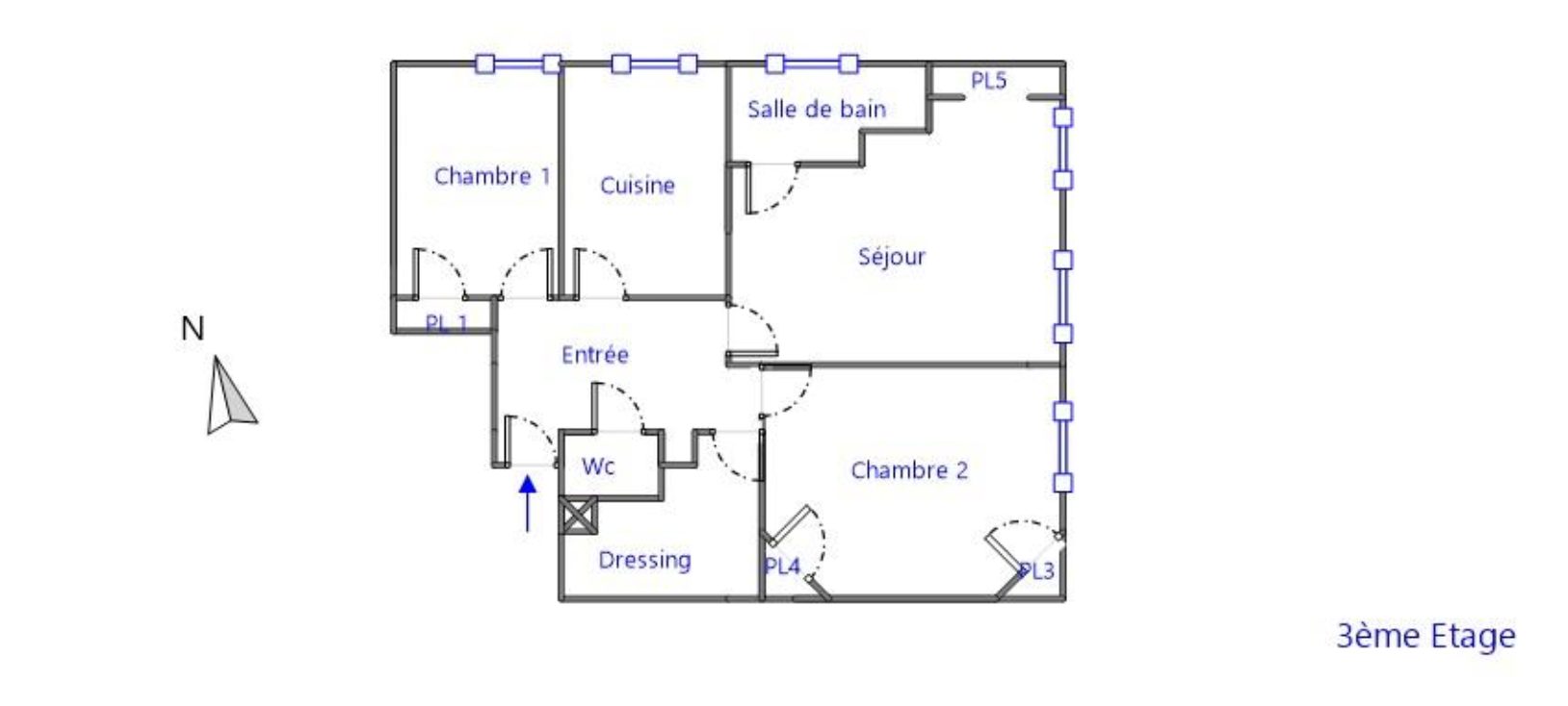 Situé au 3 éme étage/4 , cet appartement de 64 m² carrez exposé N/E est ainsi distribué :