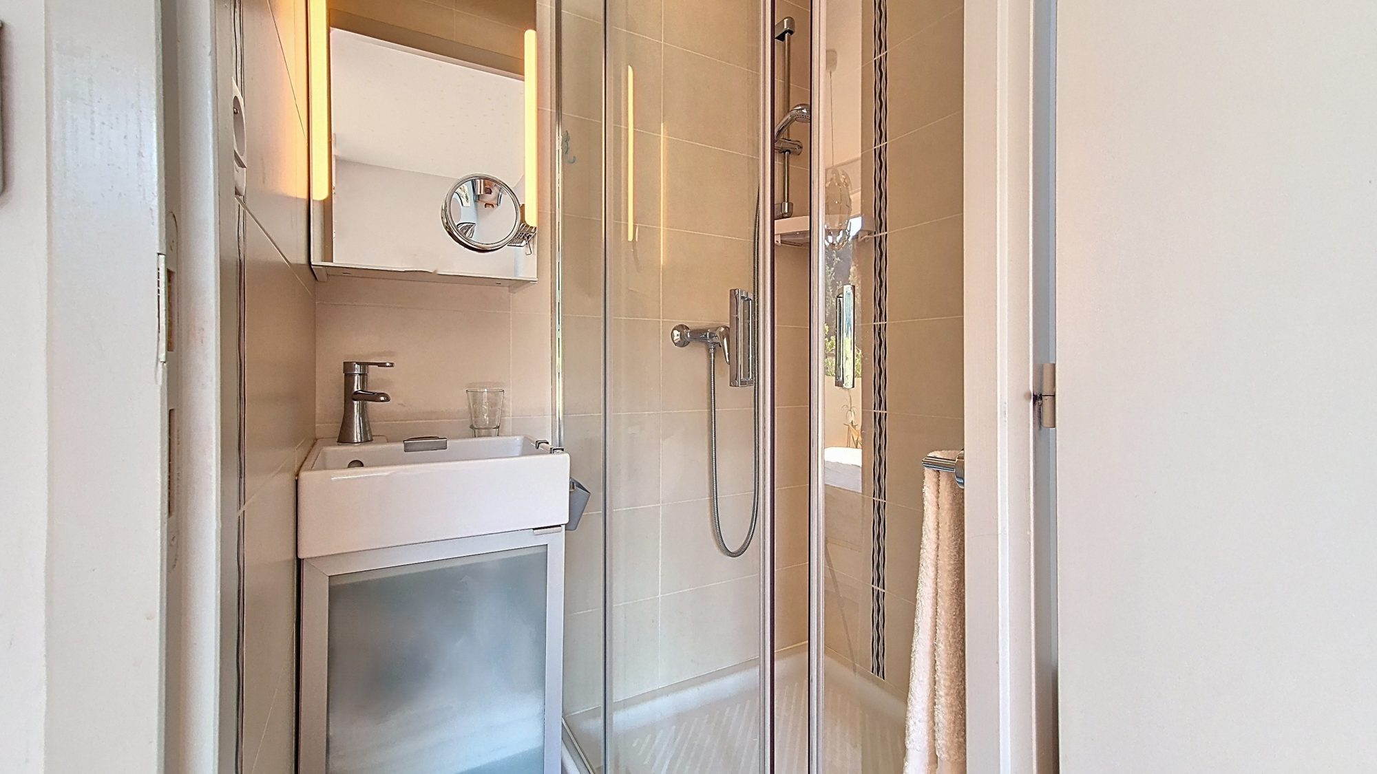 L’espace nuit se compose de deux chambres (15,42 m² et 11,56 m²), dont une suite avec salle d’eau privative.