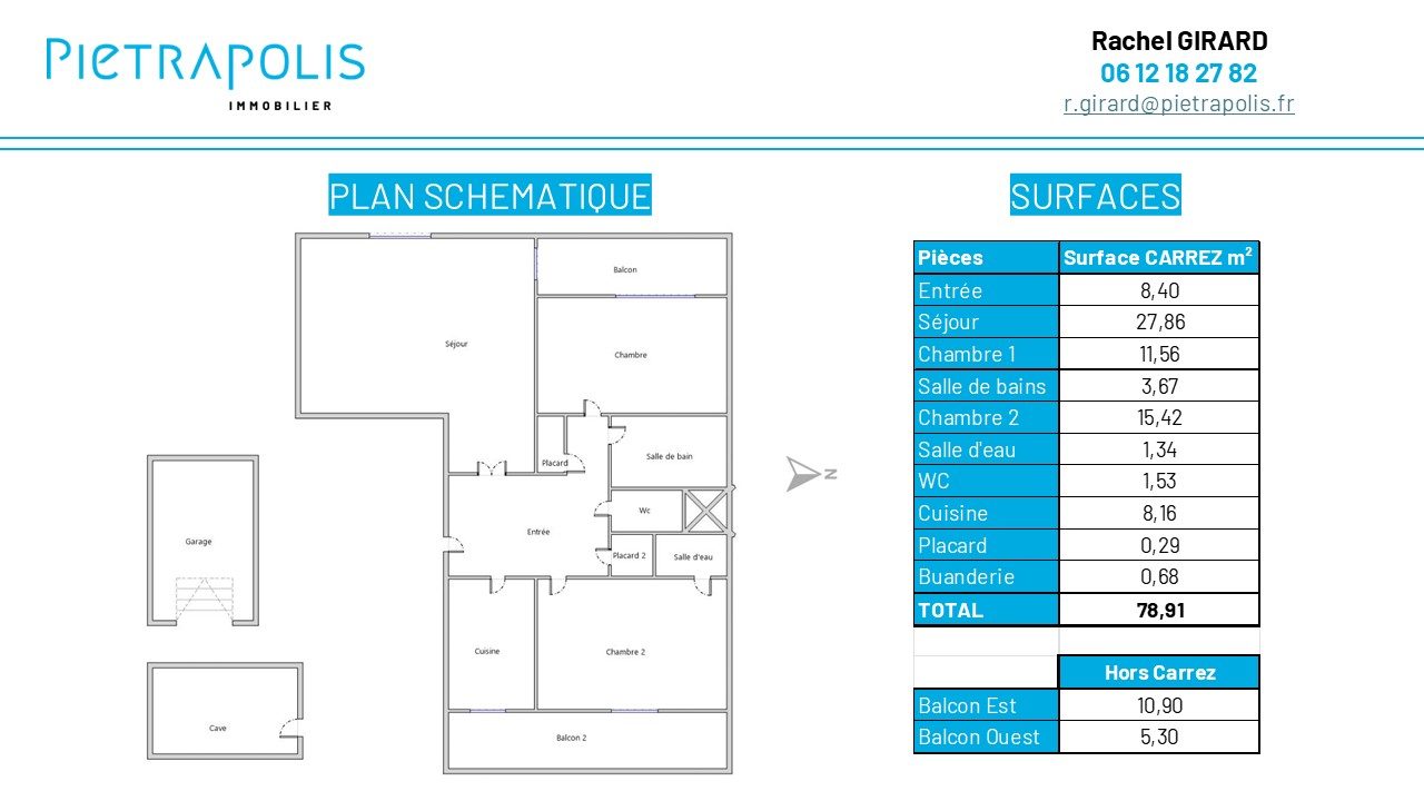 Ce T3 traversant Est/Ouest de 95 m² (78,91 m² Carrez), situé au 2ᵉ étage côté parc avec ascenseur d’une résidence sécurisée, conjugue élégance intemporelle et confort moderne.