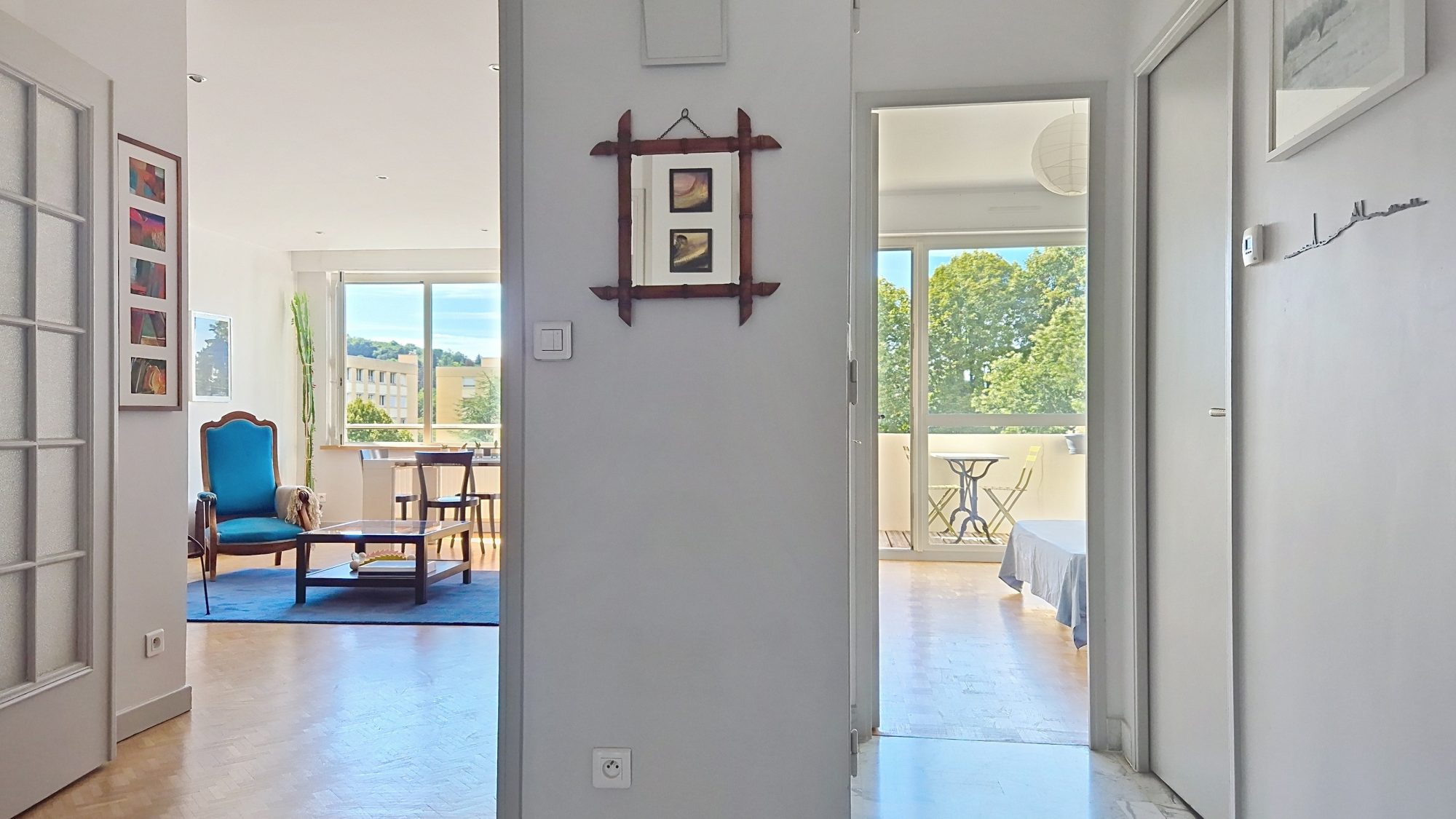 Un appartement lumineux, sans travaux, aux volumes généreux, pensé pour ceux qui recherchent la tranquillité d’un cadre verdoyant sans renoncer à la proximité de Lyon.