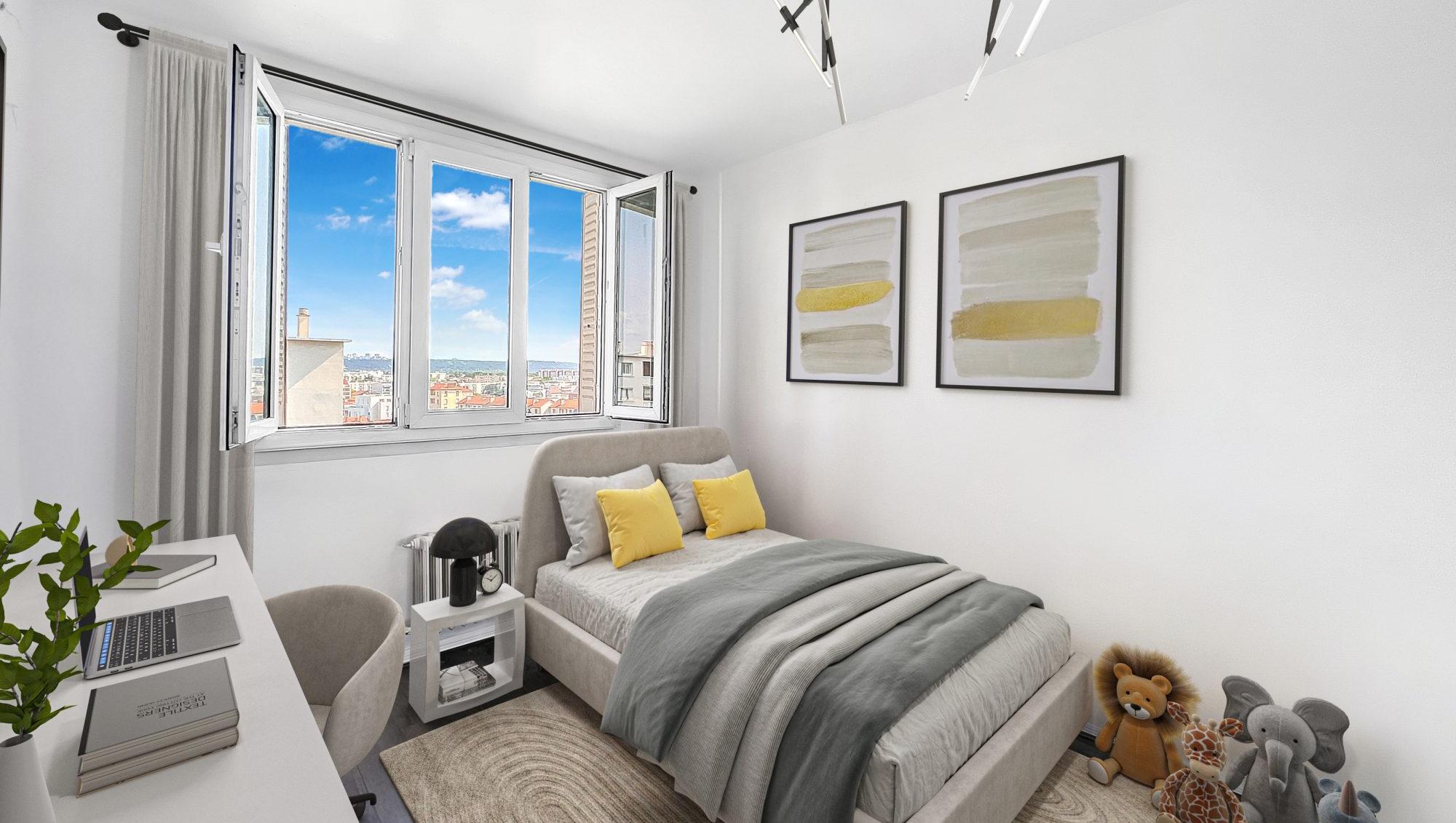 On aime son emplacement idéal, à proximité immédiate des transports (Métro A "Gratte Ciel" à 350 m), commerces, écoles et services.