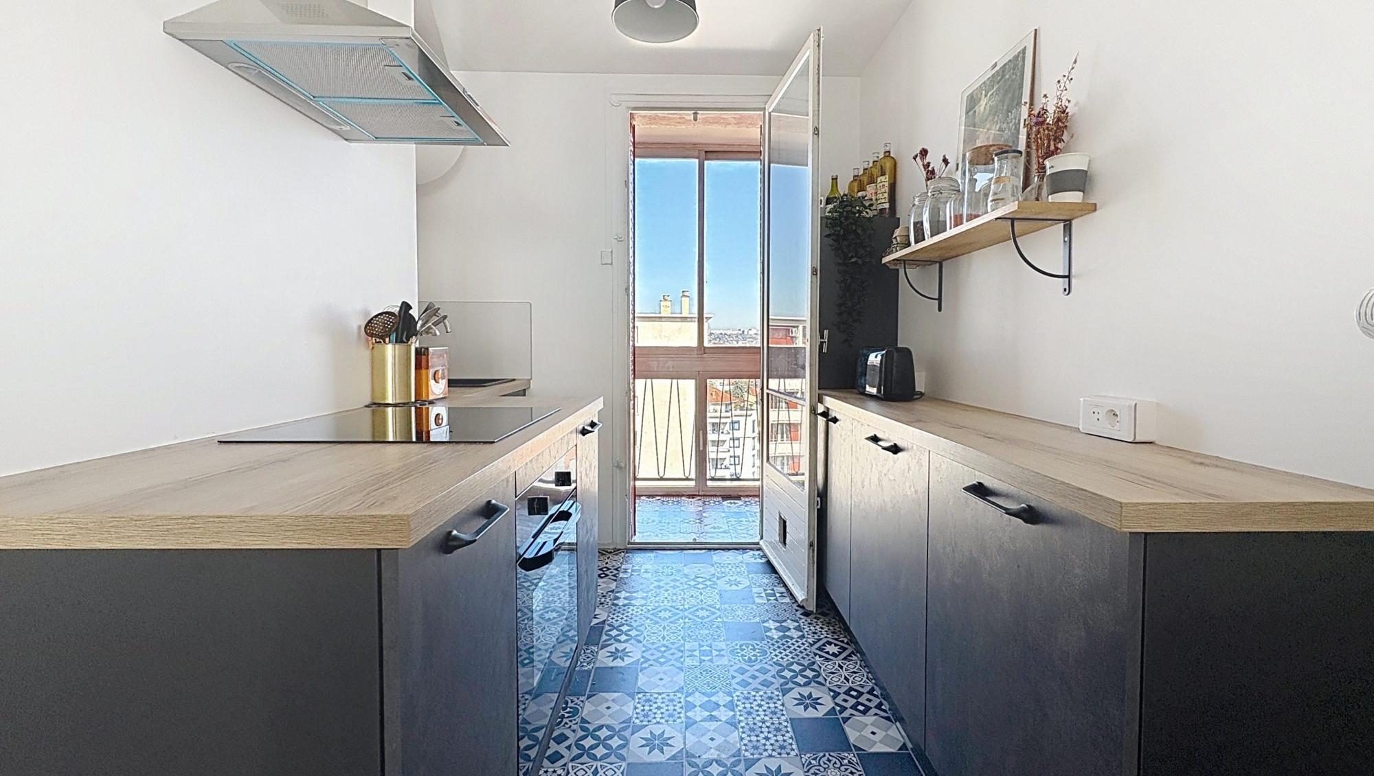 Gratte Ciel. T3 traversant de 63,50 m², en dernier étage, vue dégagée. 2 chambres. 2 loggias. Cave. Garage box fermé possible.