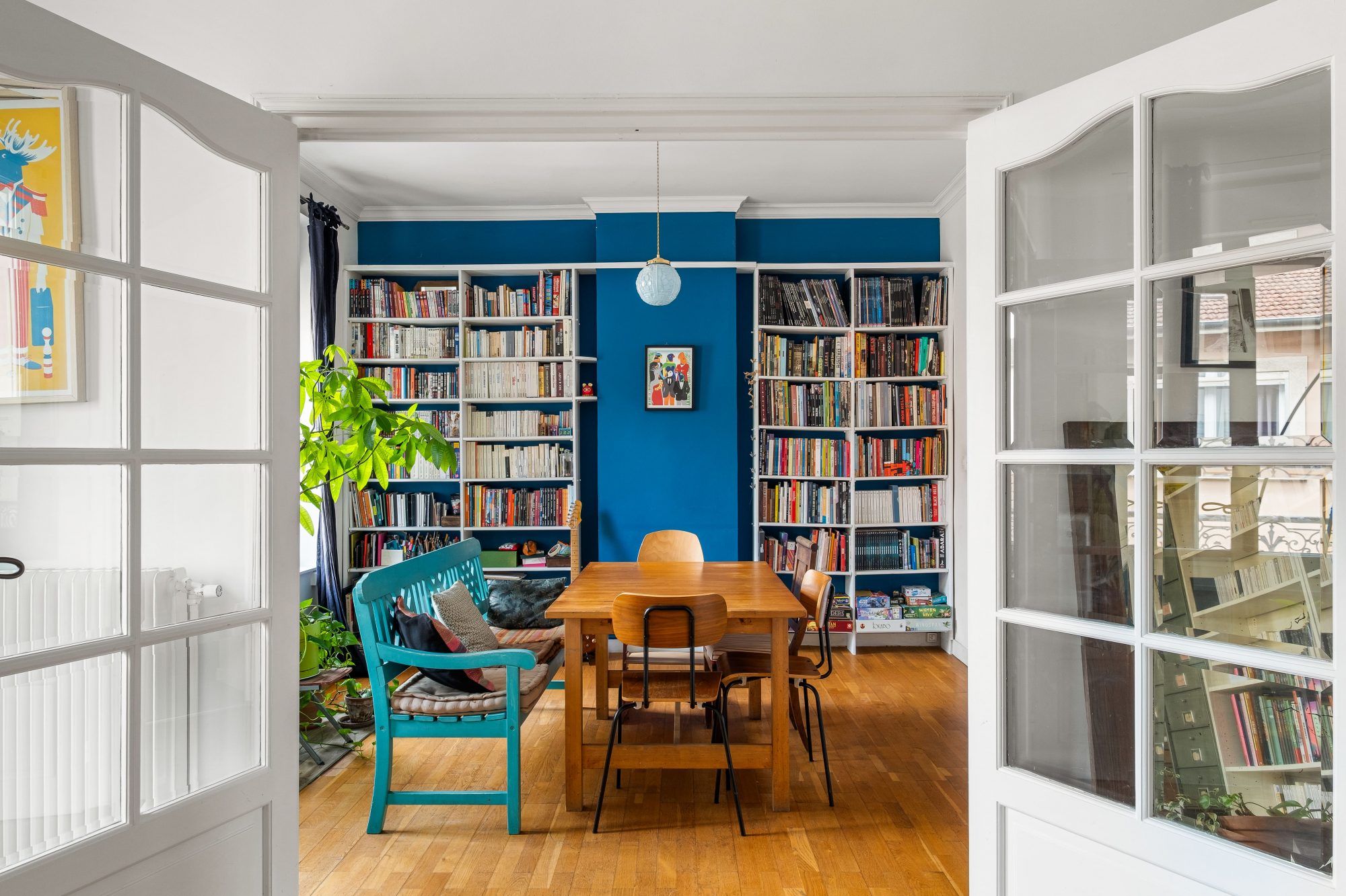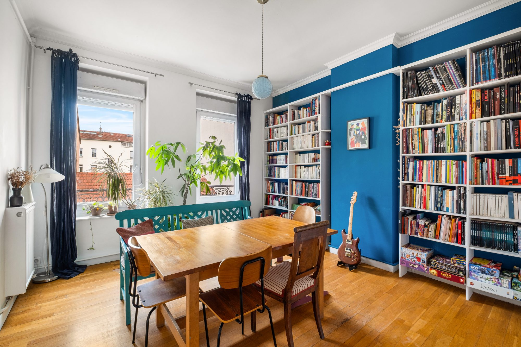 Cet appartement traversant, offre une ambiance chaleureuse à ses propriétaires entre les parquets en chêne massif, le calme de la rue et la belle hauteur sous plafond à tout juste 5mn à pieds de la gare des Brotteaux et 20mn à pieds du Parc de la tête d'Or.
