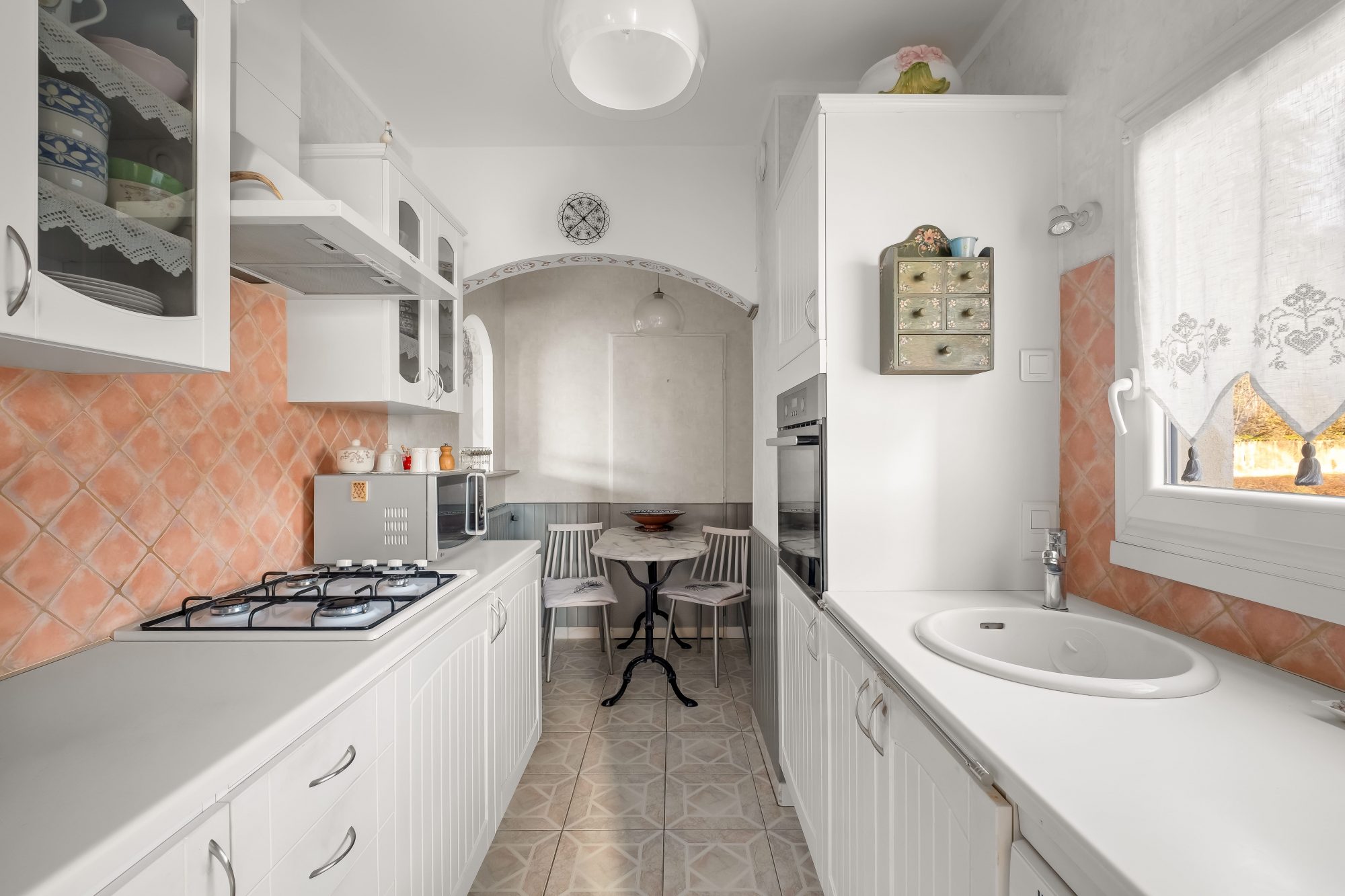 La cuisine équipée, attenante à la pièce de vie, offre la possibilité d’être entièrement ouverte pour créer un ensemble ultra-contemporain et convivial. Une buanderie ainsi que des WC séparés complètent cet étage.
