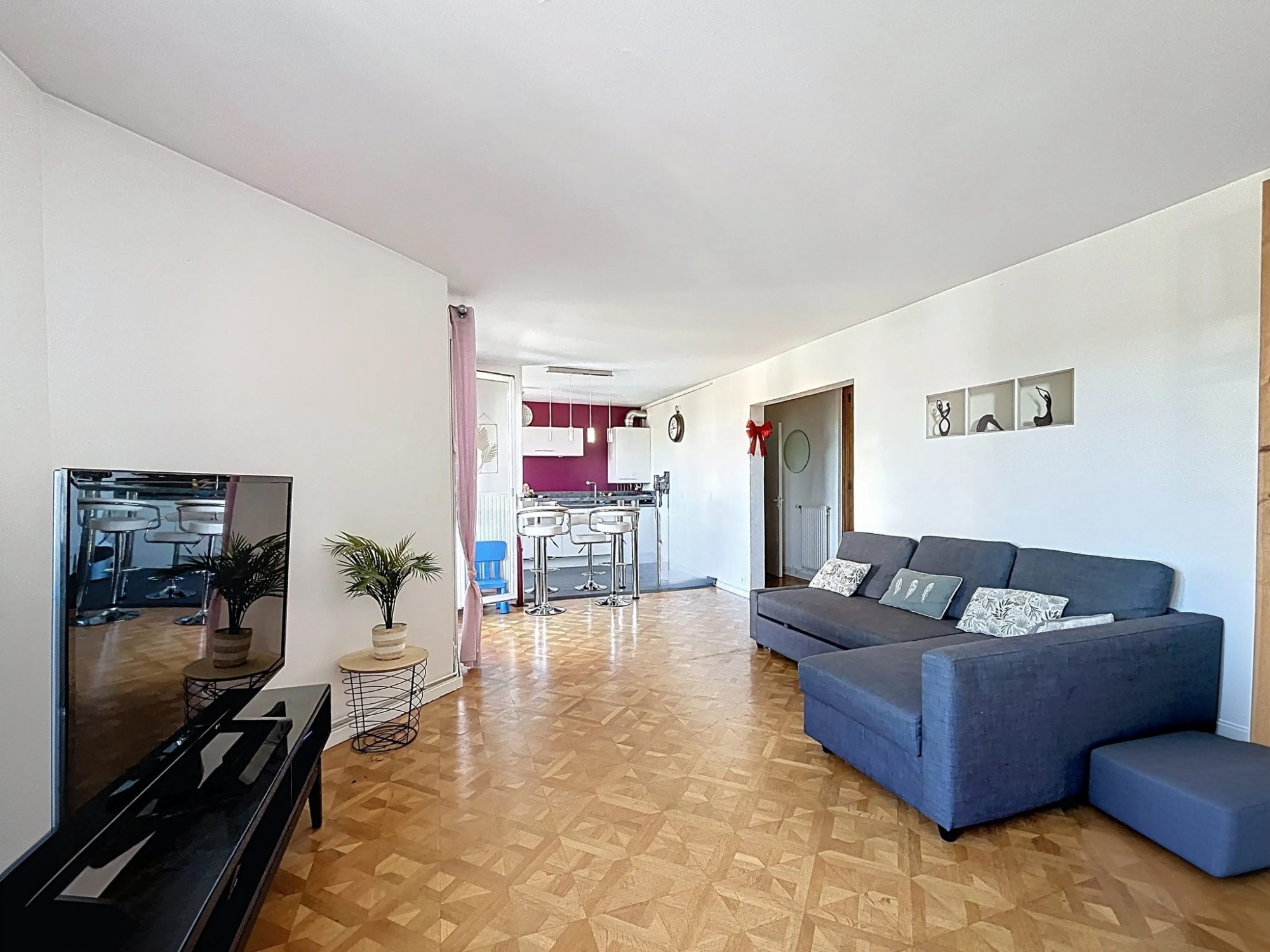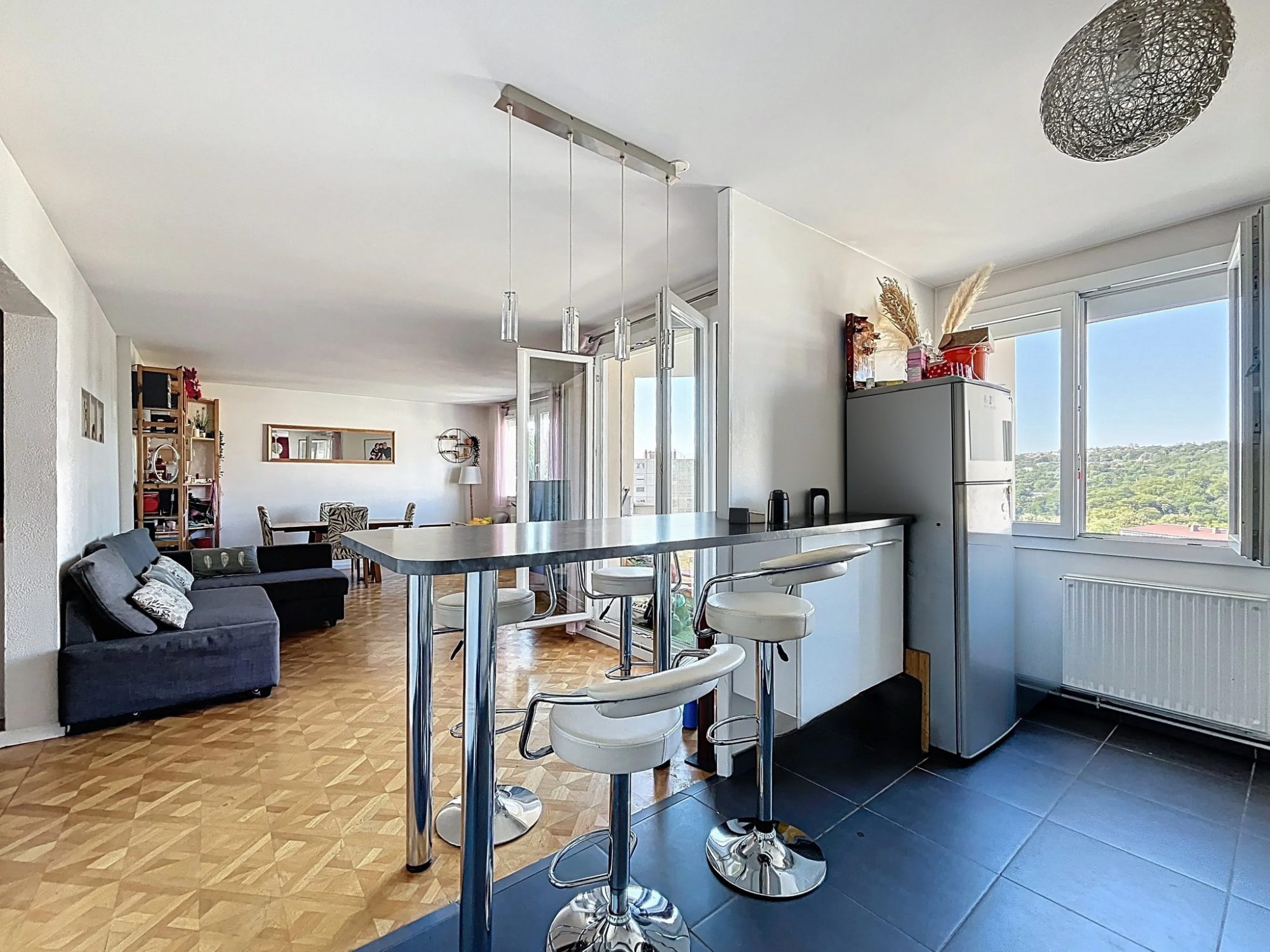 Au cœur de cet appartement, un vaste séjour de 37 m² baigné de lumière naturelle grâce à ses grandes ouvertures en PVC à double vitrage. La cuisine américaine, aménagée et équipée, est un véritable atout pour les amateurs de cuisine et de convivialité. Les trois chambres spacieuses et la salle de bains moderne offrent un confort optimal. Un WC indépendant complète les commodités.