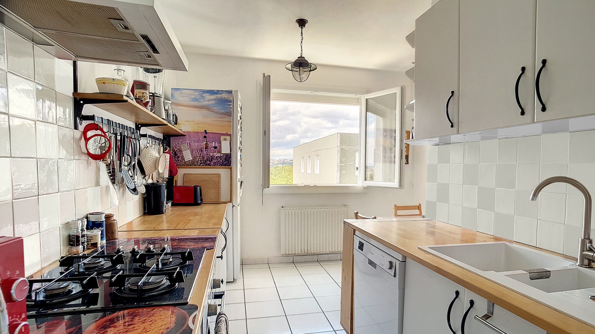 L'appartement se compose d'une entrée avec placard donnant accès à une pièce de vie ouverte sur son balcon exposée Ouest et sa cuisine/ Salle à manger indépendante entièrement équipée de 11m² avec cellier attenant.