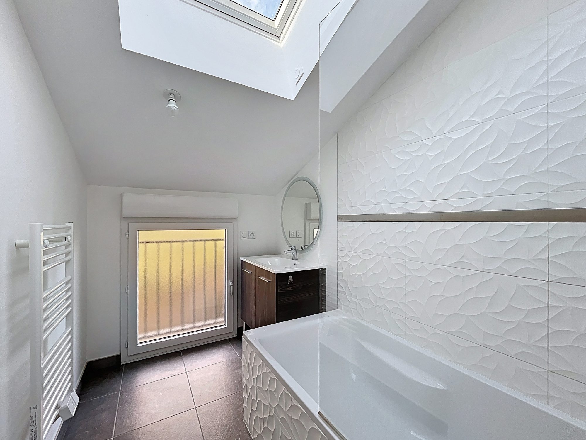 Profitez d'un balcon de 14 m² pour des moments de détente en plein air. L'appartement est équipé d'un chauffage individuel, de fenêtres en PVC avec double vitrage, et d'une salle de bains ainsi que d'une salle d'eau pour plus de commodité.
