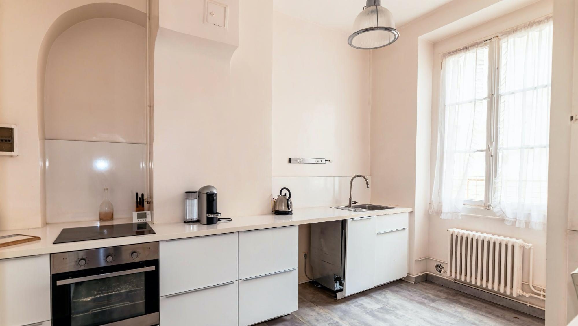 Cet appartement T5 de 132 m² environ situé au 4ème étage d'un bel immeuble 1900 à la façade rénovée en 2024 , avec ascenseur, offre une belle vue sur Fourvière et les quais du Rhône.