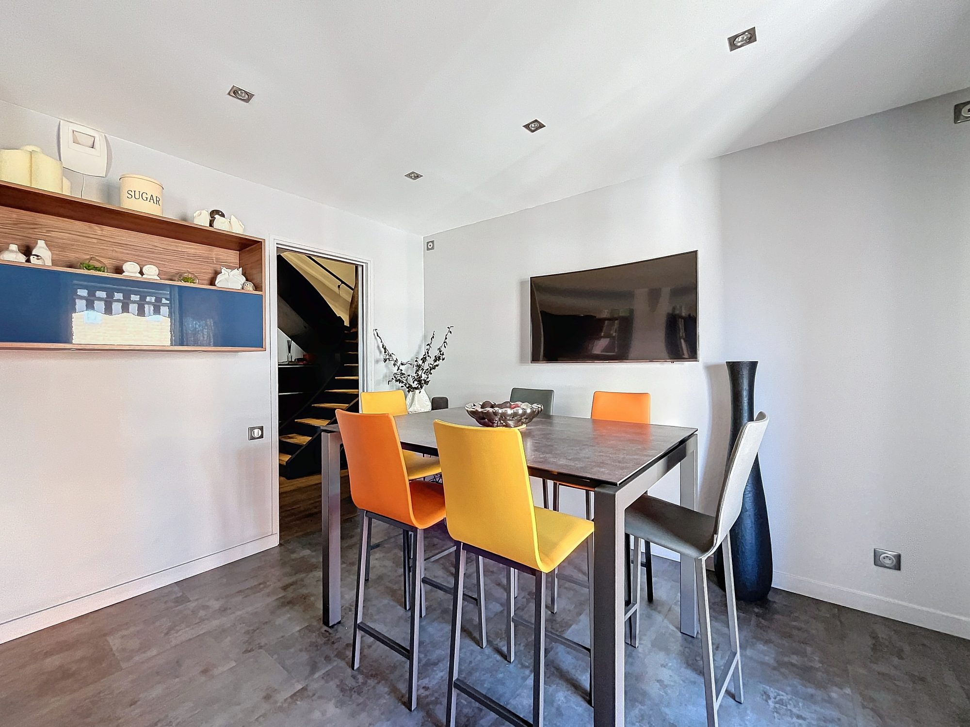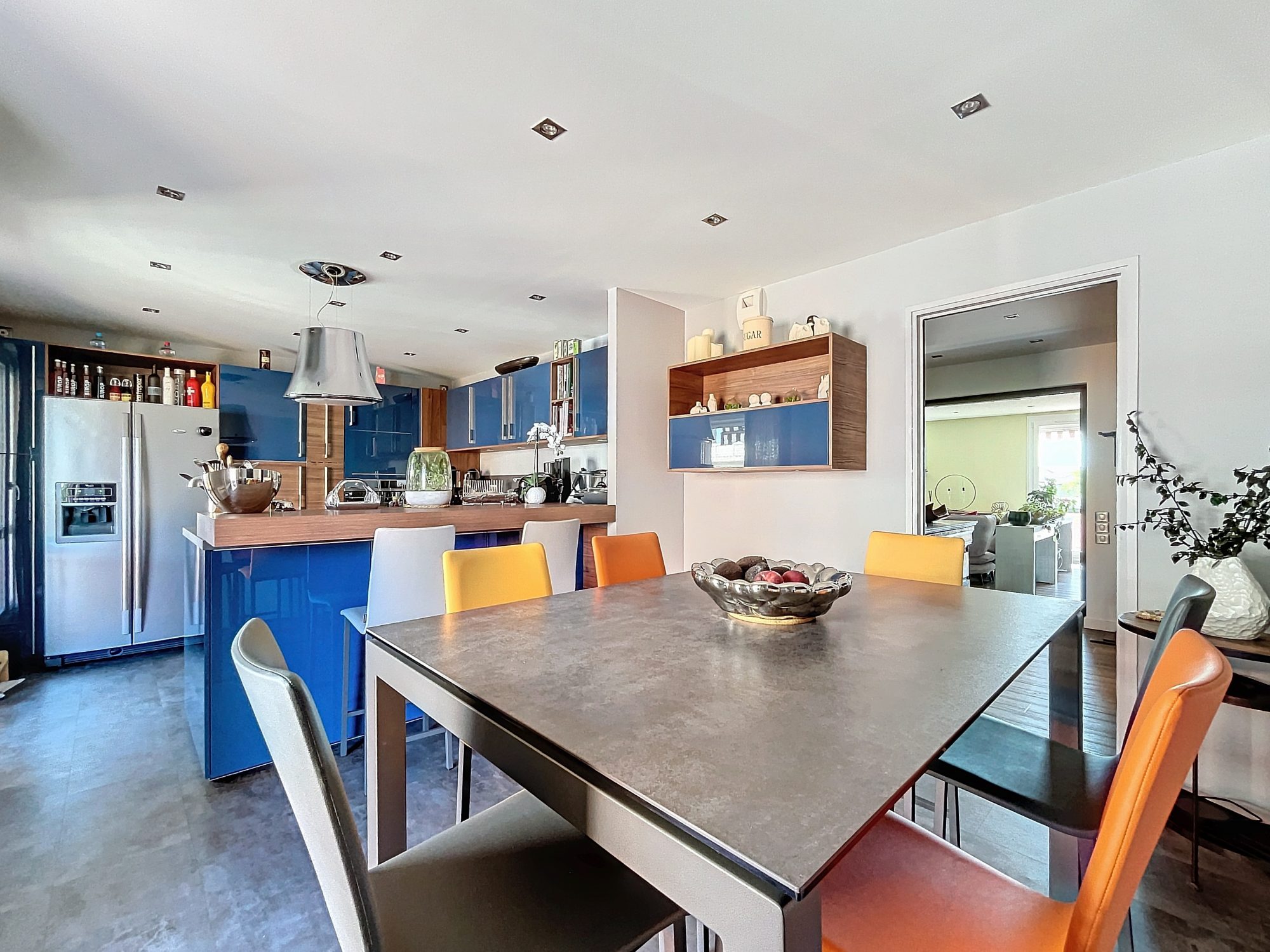 Niché au 7ème et dernier étage d'une résidence des années 80 bien entretenue , appartement duplex de 150 m2 avec 4 chambres, il a été rénové et réorganisé en 2016 alliant modernité et confort, traversant "EST-OUEST", il est très lumineux, sans vis à vis et entièrement CLIMATISE avec une PAC réversible