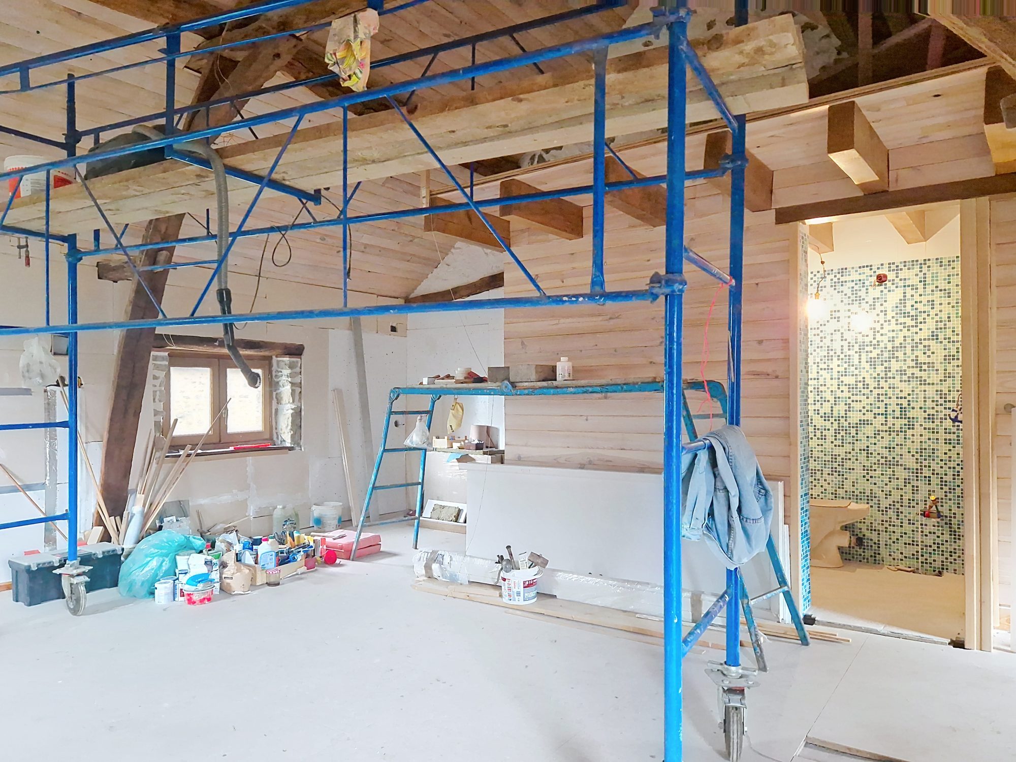 Une dépendance habitable de suite pendant les travaux (environ 35 m² au sol) :
