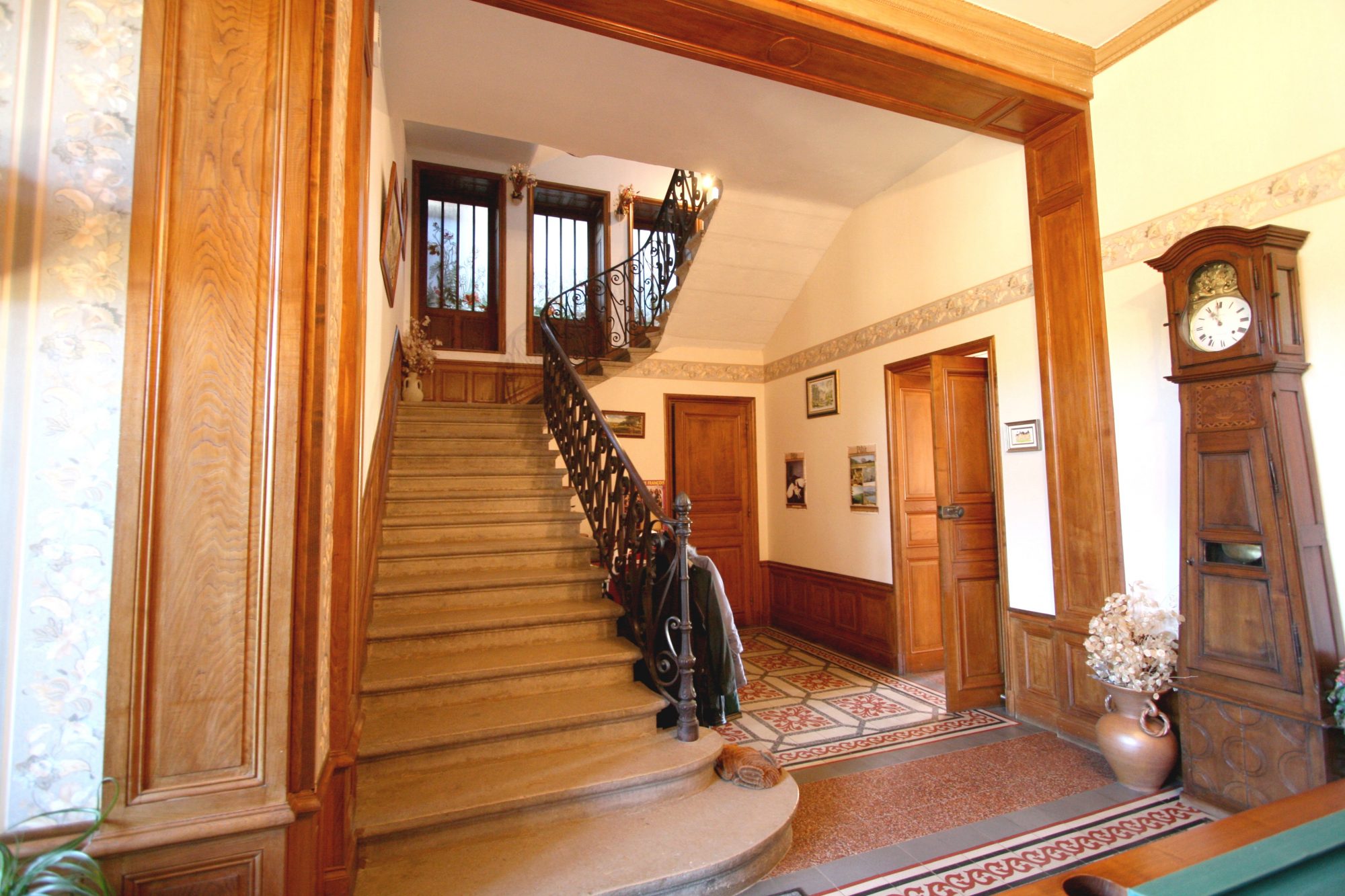 En franchissant la porte d'entrée, vous serez immédiatement séduits par l'authenticité, le charme, les grandes hauteurs sous plafonds, les sols en carreaux de ciment et l'imposant escalier en pierre.