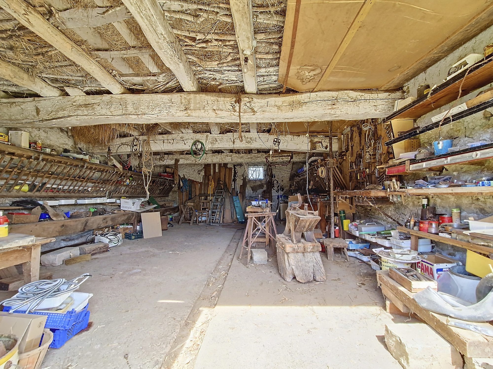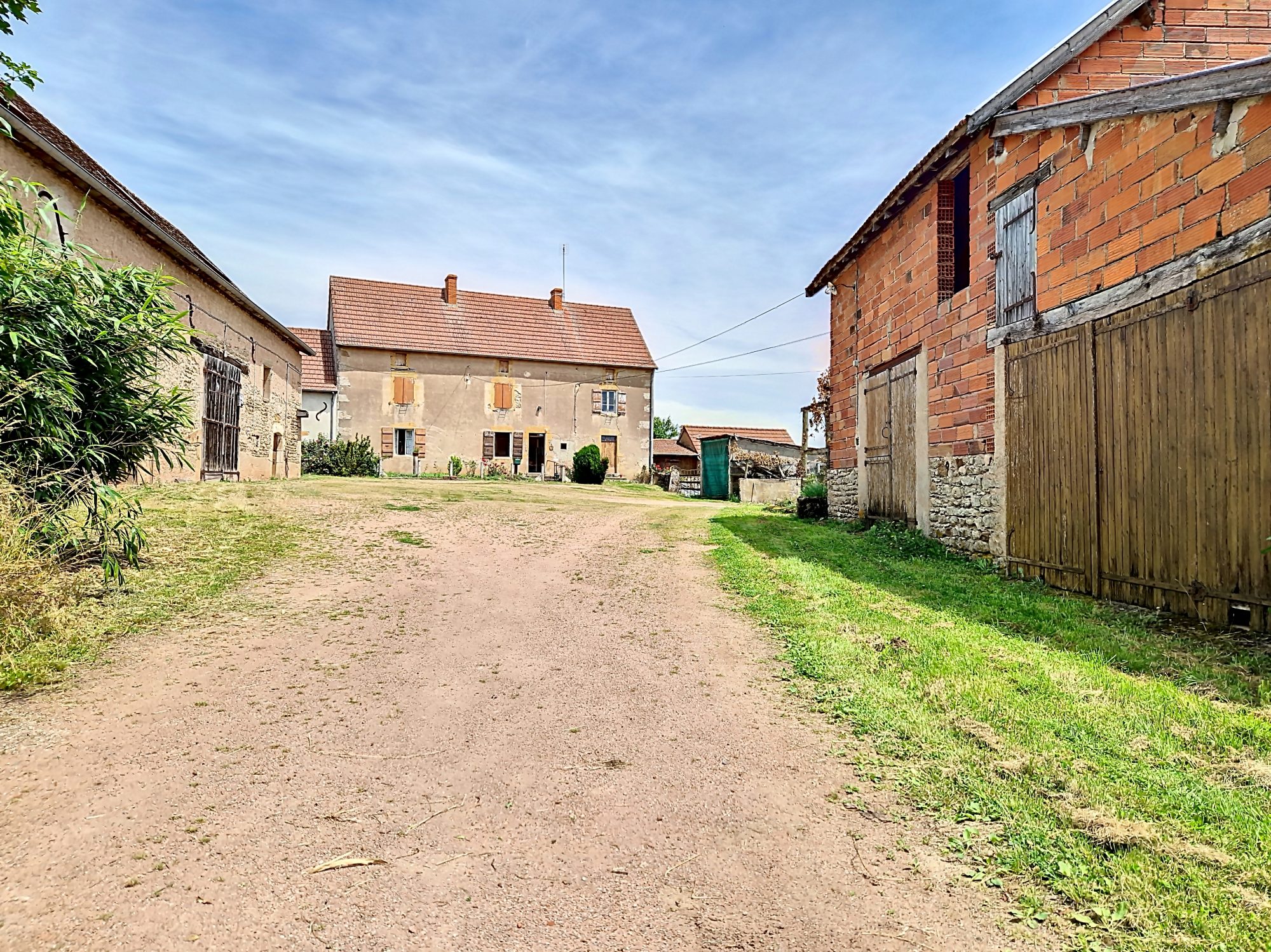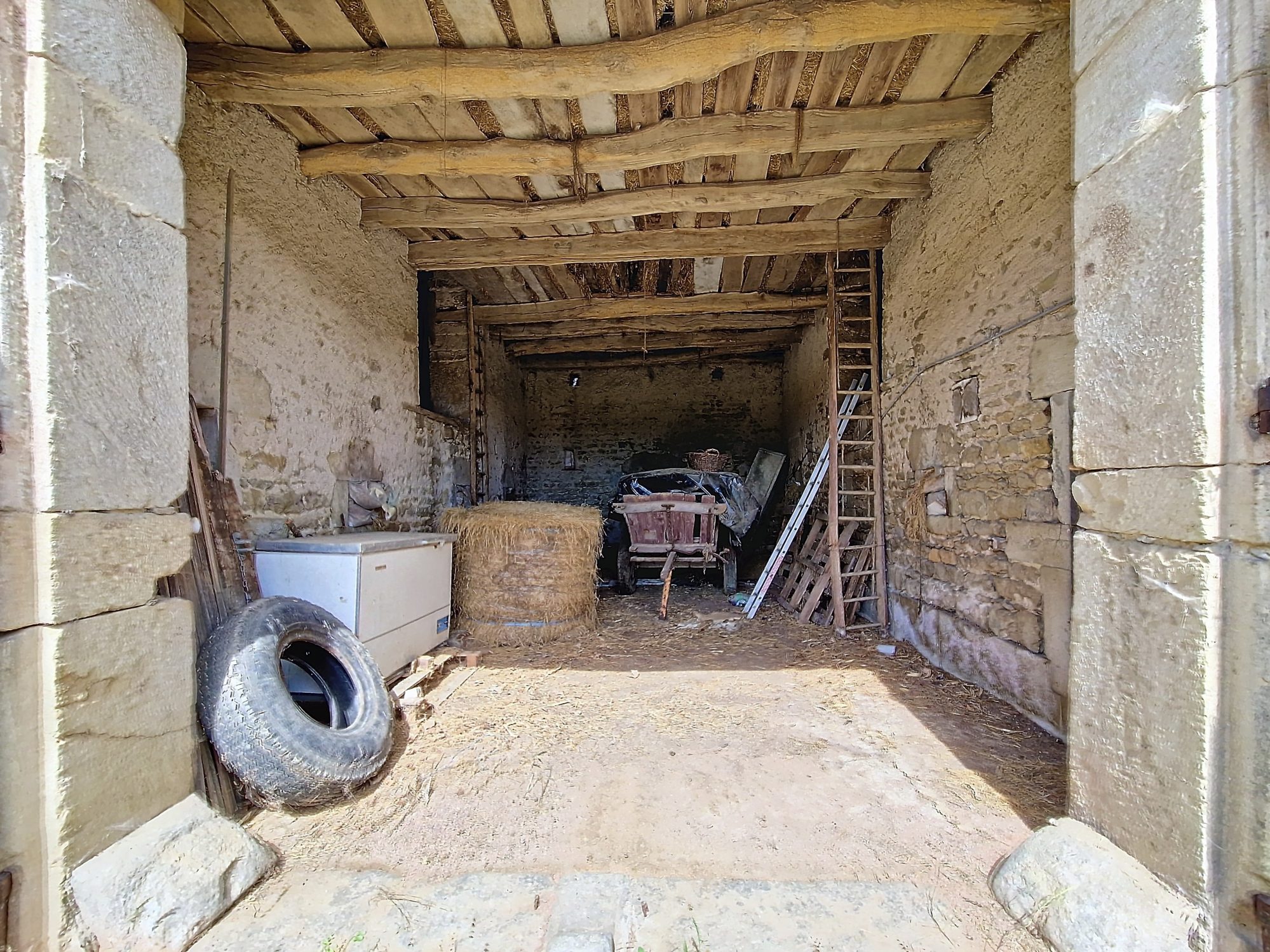 Une très belle cour plate avec dépendances : une grange, des écuries, un atelier, un garage.