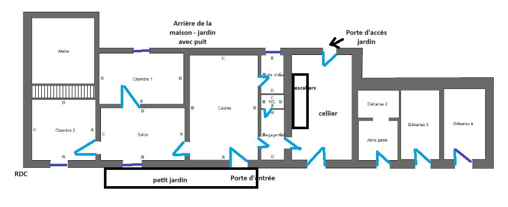 La surface habitable de 95 m² se situe actuellement uniquement au RDC: