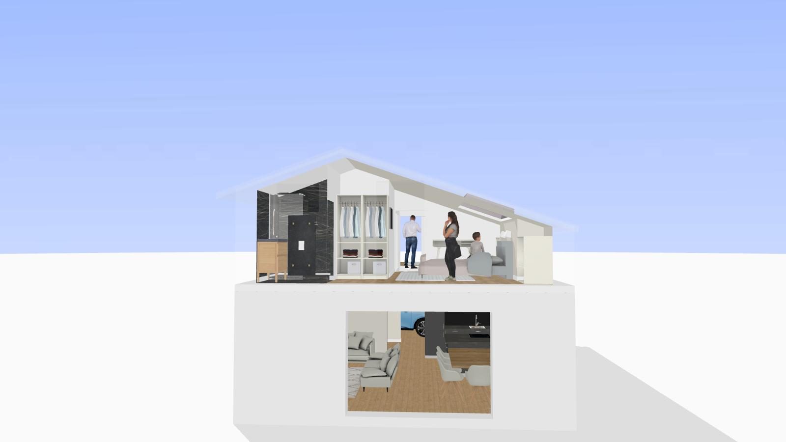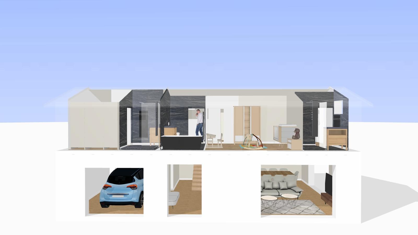 110 m² habitables sur 400 m² de terrain, répartis sur deux niveaux bien agencés, avec matériaux modernes et belle luminosité grâce aux larges ouvertures.