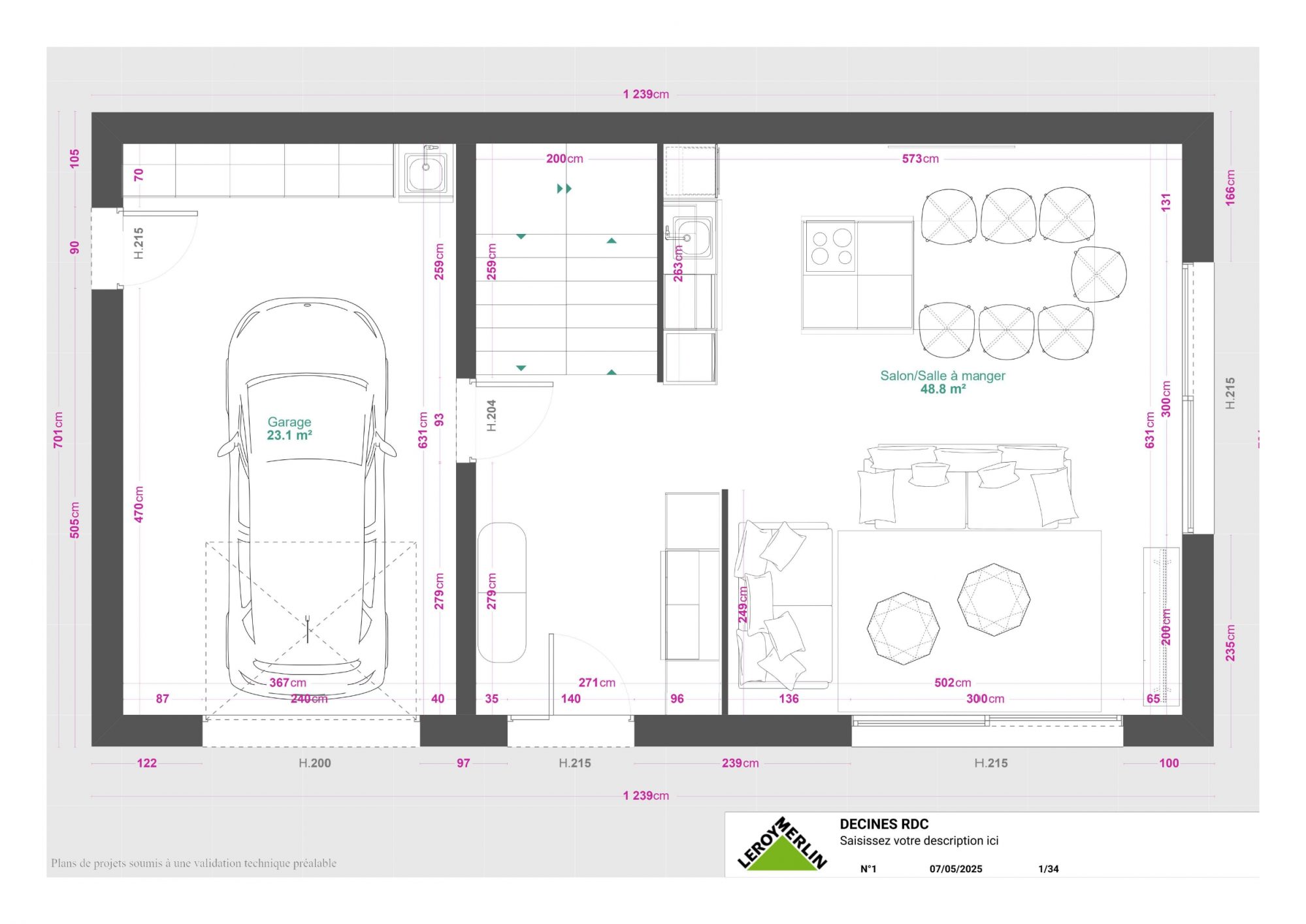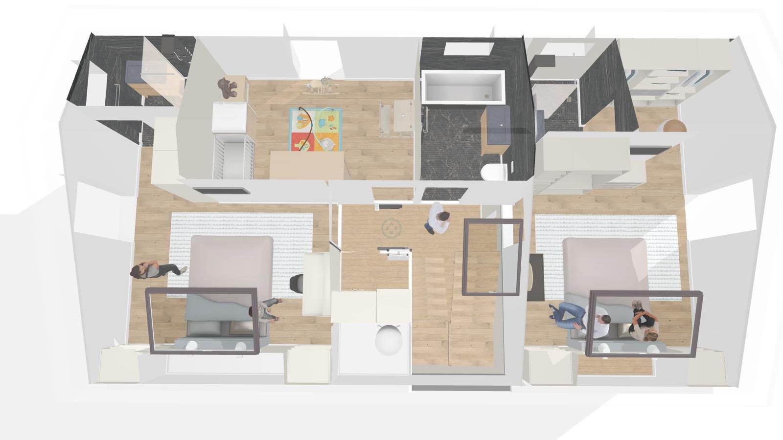 • Pièce de vie lumineuse de 48,8 m² avec salon, salle à manger et cuisine ouverte