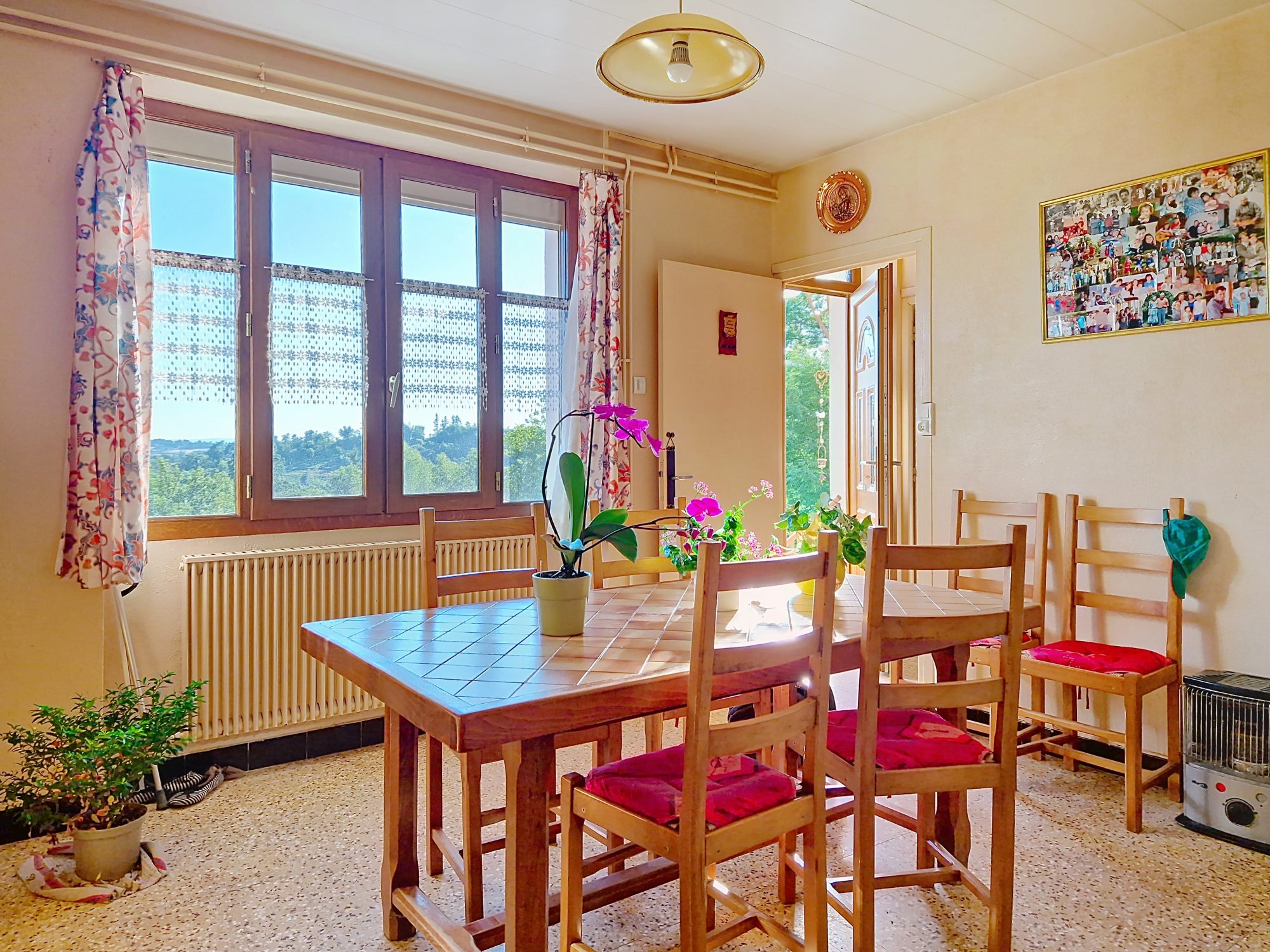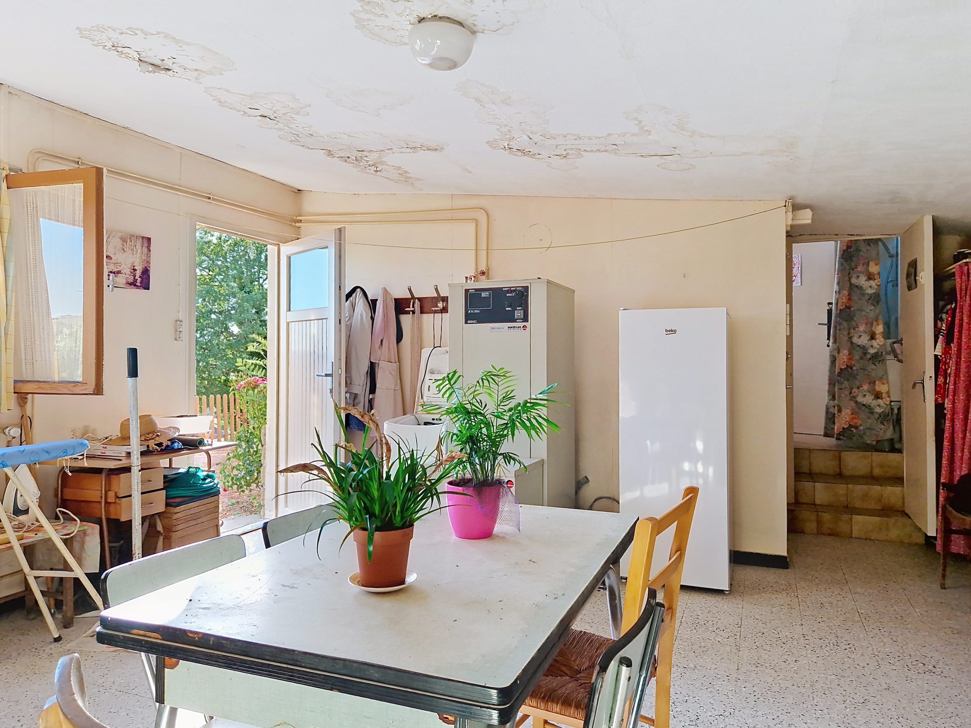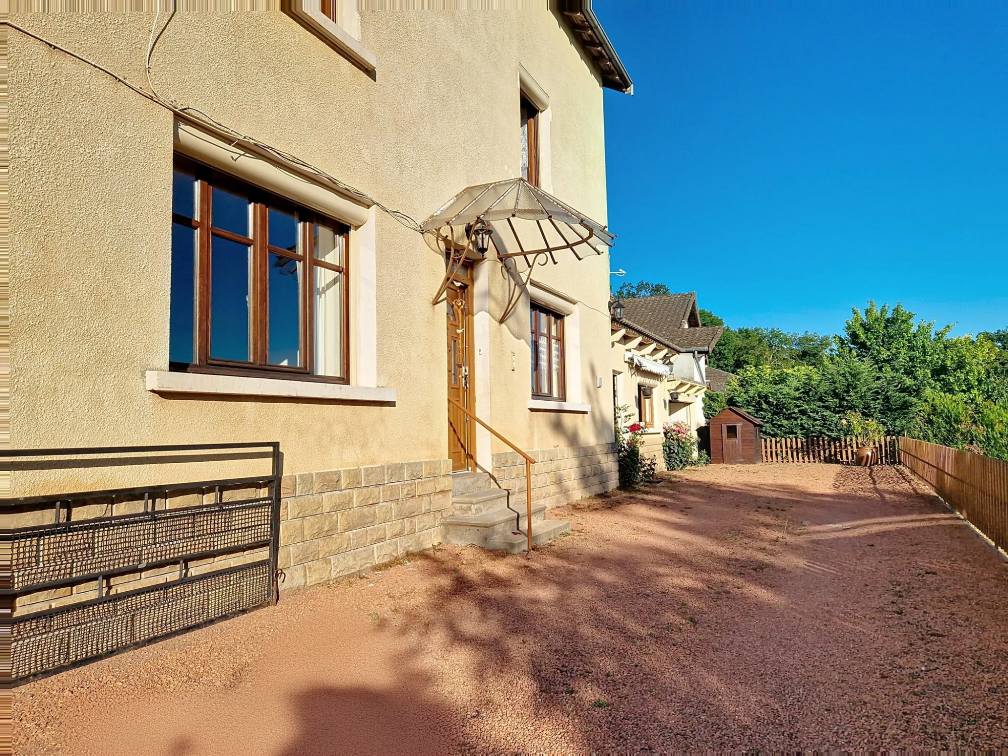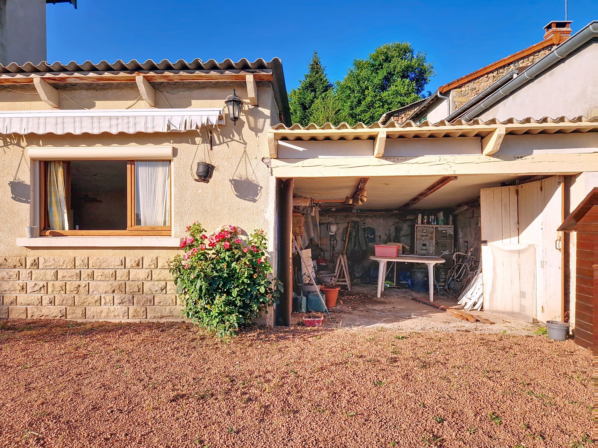 Le bien est équipé de menuiseries double vitrage, d’un chauffage central au fioul, d’une cave, d’un atelier, et d’une cour d’environ 90 m², exposée sud Ouest