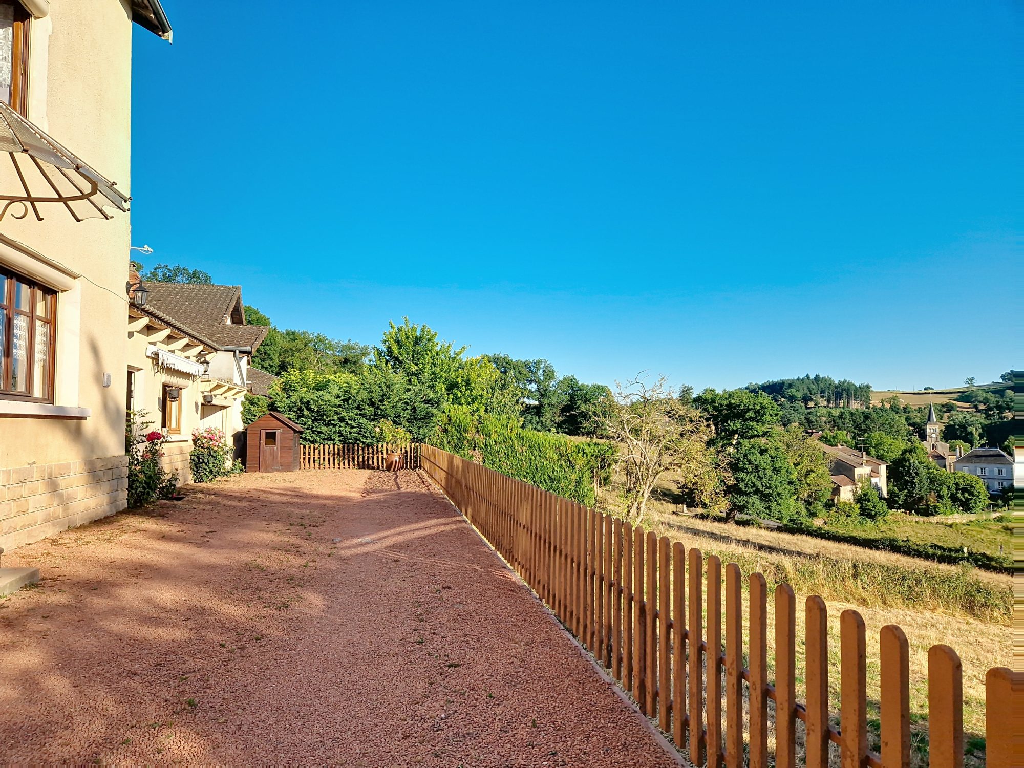À quelques pas, un terrain non attenant de 980 m² comprend un grand garage (plusieurs véhicules).