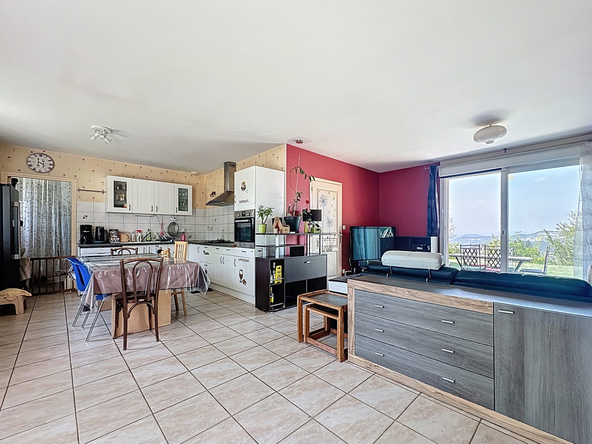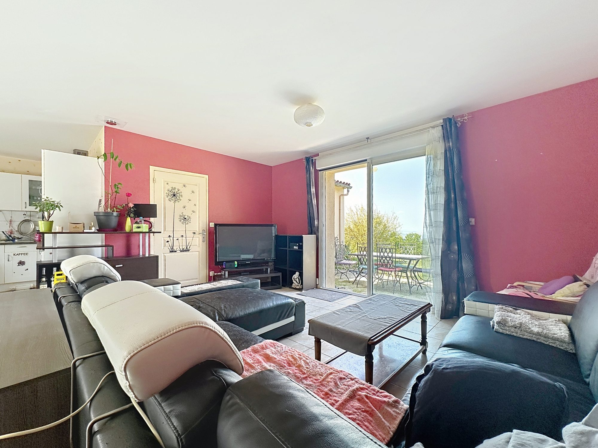 Une pièce de vie lumineuse avec accès direct au jardin