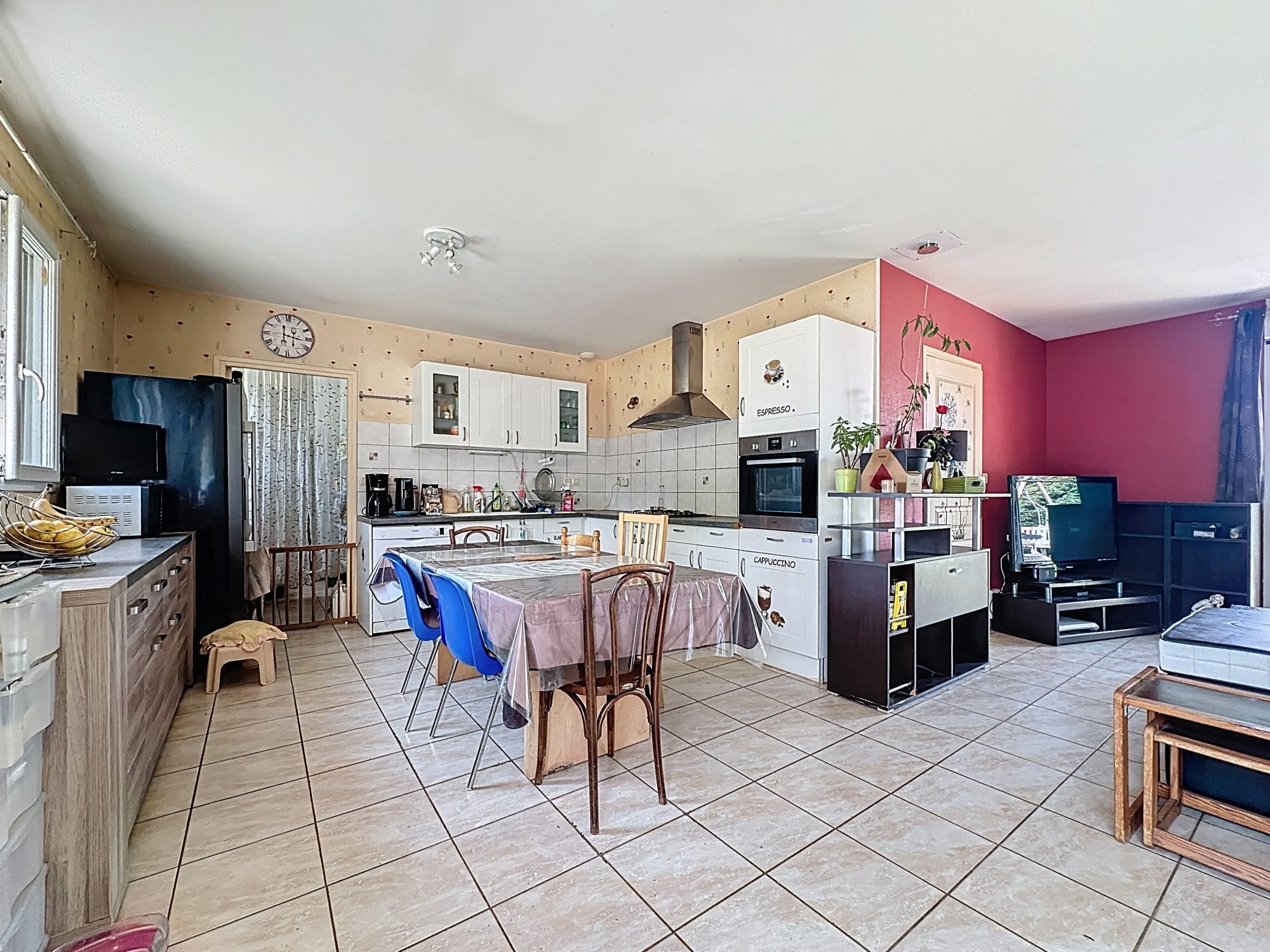 Une grande cuisine ouverte sur l’espace de vie avec cellier et buanderie