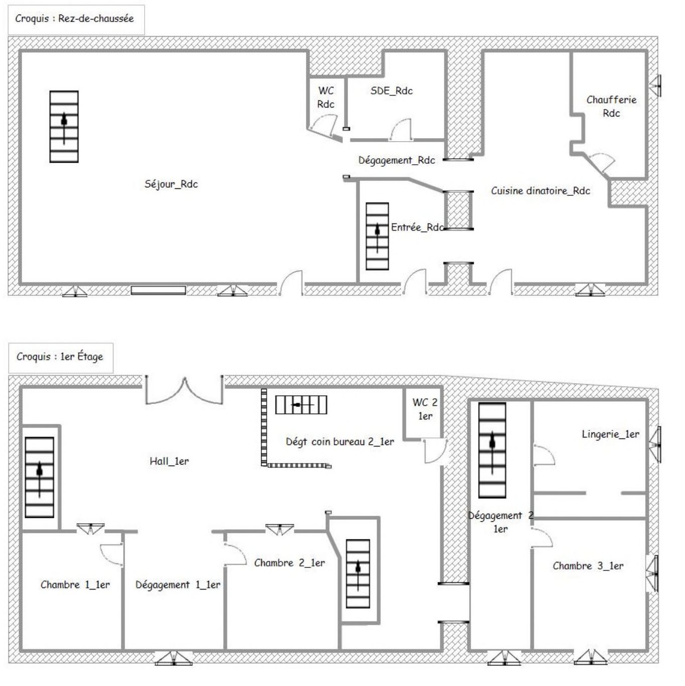 Le premier étage se compose d’un grand hall qui distribue trois chambres spacieuses, une lingerie, un coin bureau et un WC indépendant.