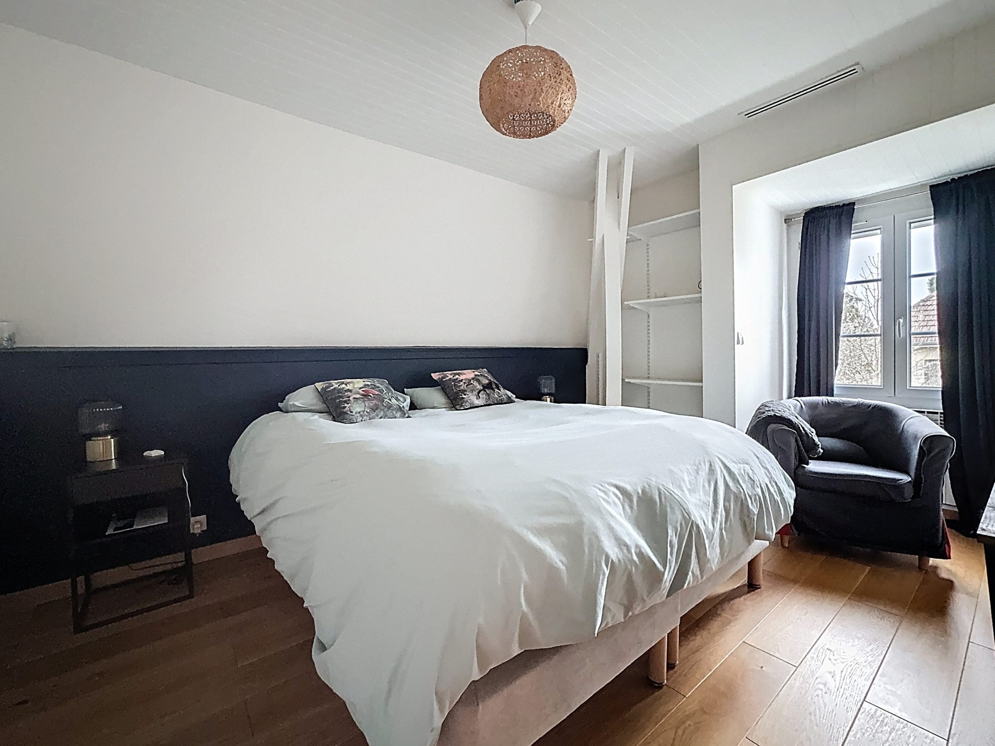 Dès l’entrée, vous serez charmé par la luminosité et l’atmosphère chaleureuse des lieux. La pièce de vie avec parquet massif et cheminée en pierre offre un espace de vie confortable et convivial. La décoration qui allie ancien et contemporain confère à l’ensemble un cachet indéniable.